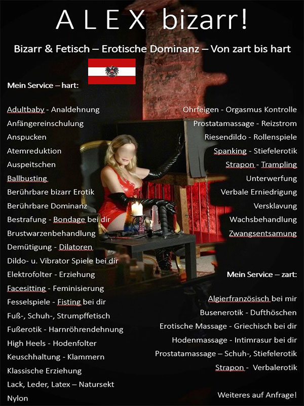 Algierfranz. bei mir, Busenerotik, Dufthöschen, Griechisch bei dir, Hodenmassage, Intimrasur bei dir, Prostatamassage, Schuherotik, Stiefelerotik, Strapon.Verbalerotik